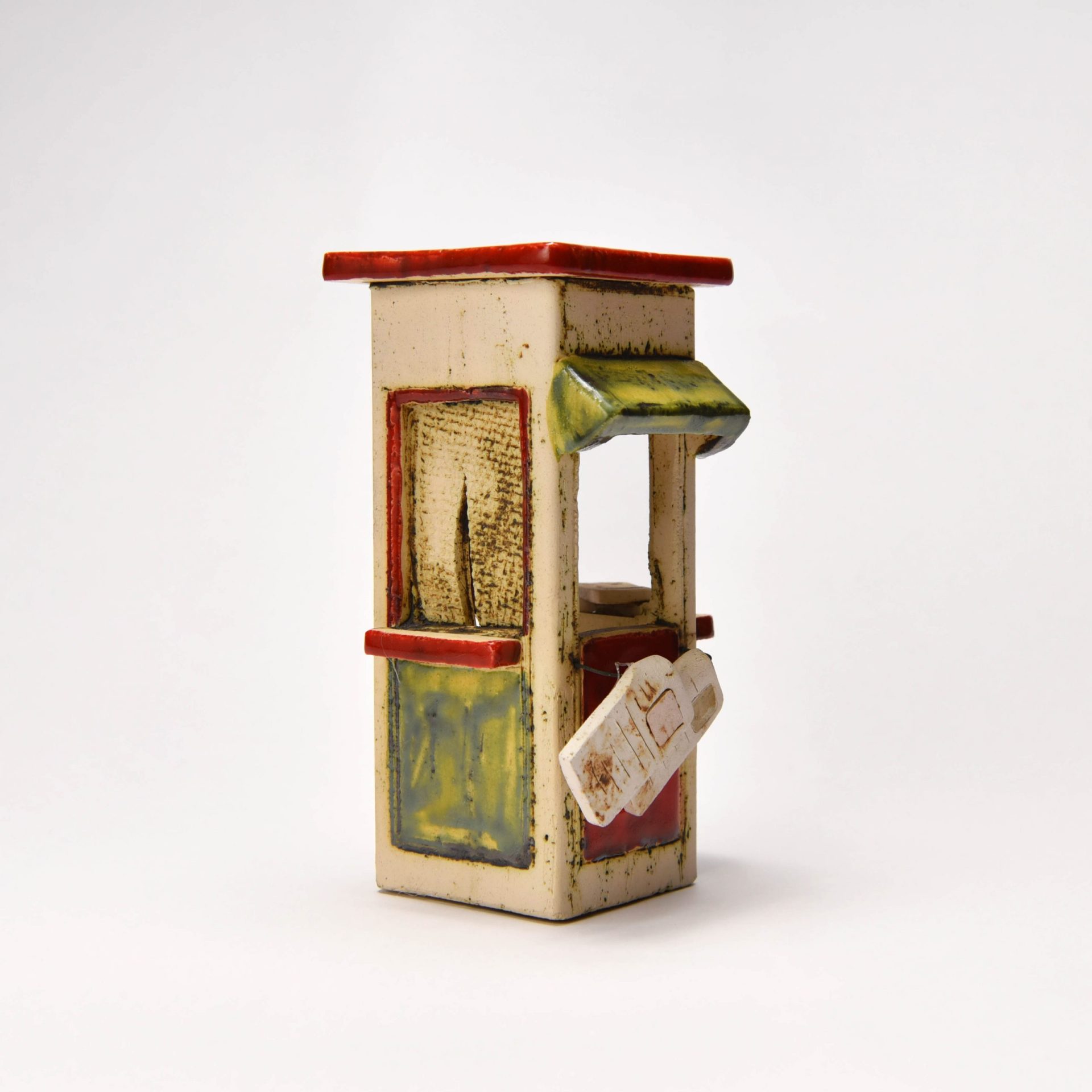 Χειροποίητο κεραμικό με δυο ανοίγματα, κρεμασμένες εφημερίδες, και θέση για ρεσώ.
